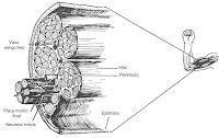 Un nervio motor consta de muchísimas células nerviosas, cada una de las cuales se conecta y se extiende hacia las distintas fibras musculares.